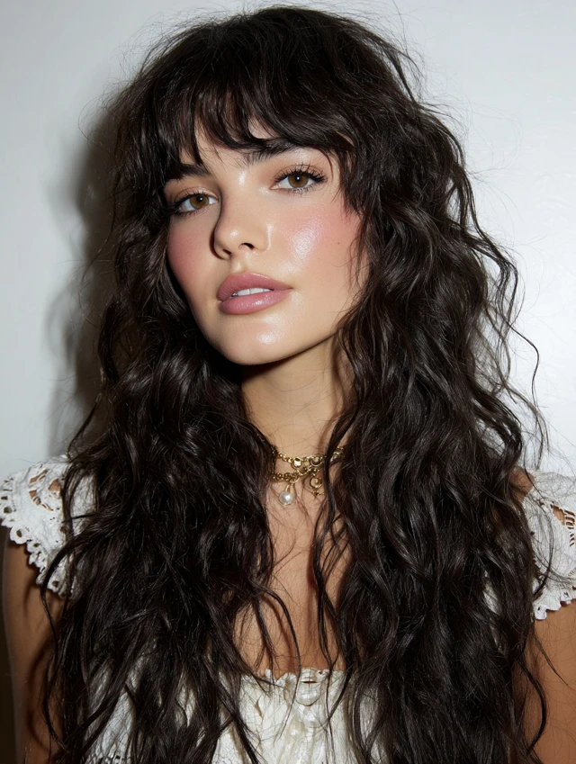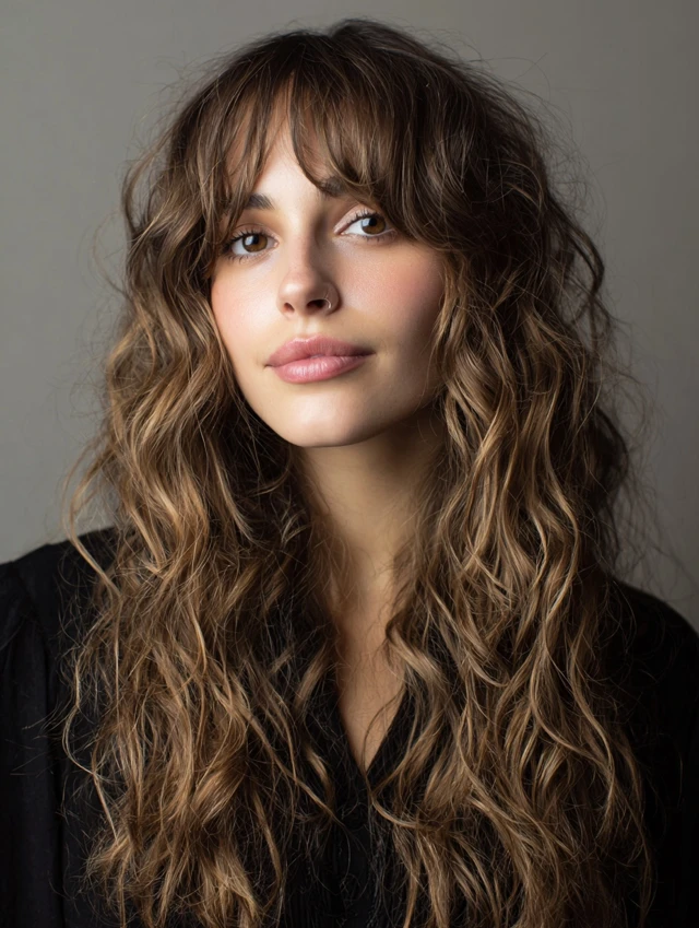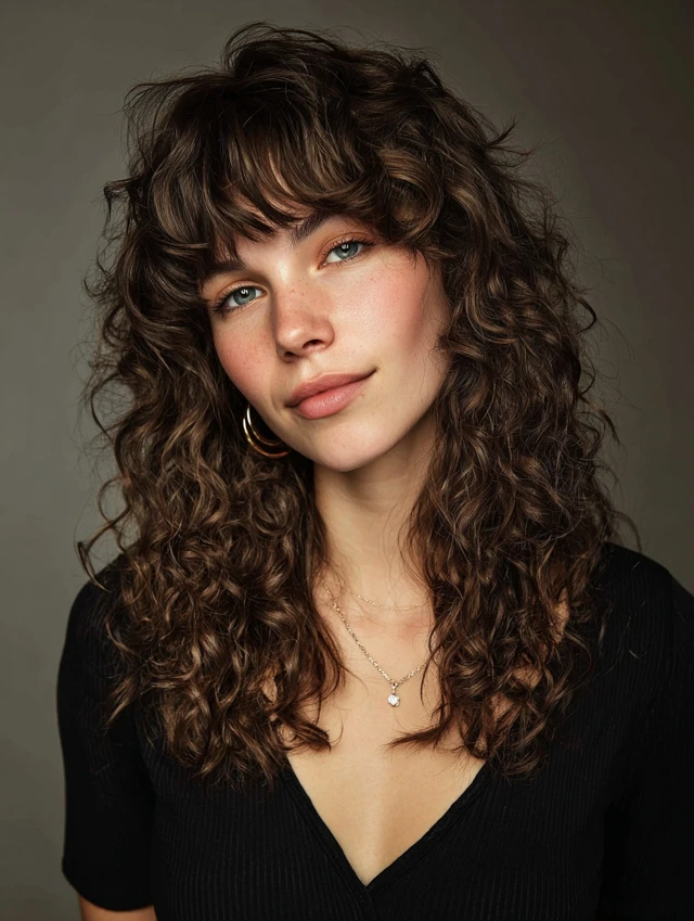 Curly texture makes the bangs look full, soft, and dynamic.