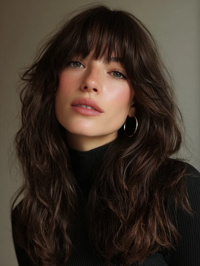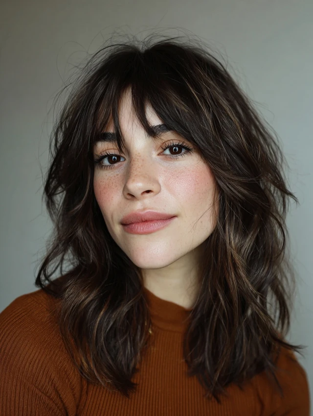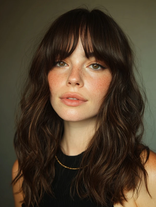 Natural waves give the bangs a relaxed, effortless feel.