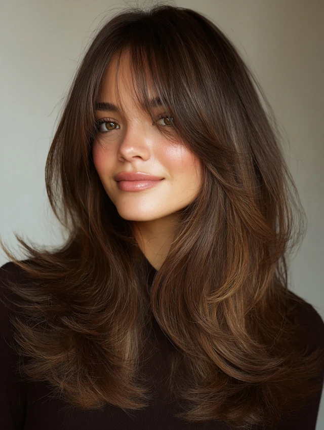 Layers enhance movement and help the bangs blend seamlessly.