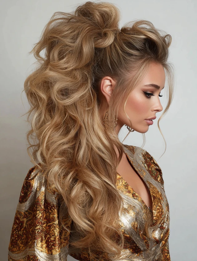 Adds height and glamour while keeping hair off the shoulders.