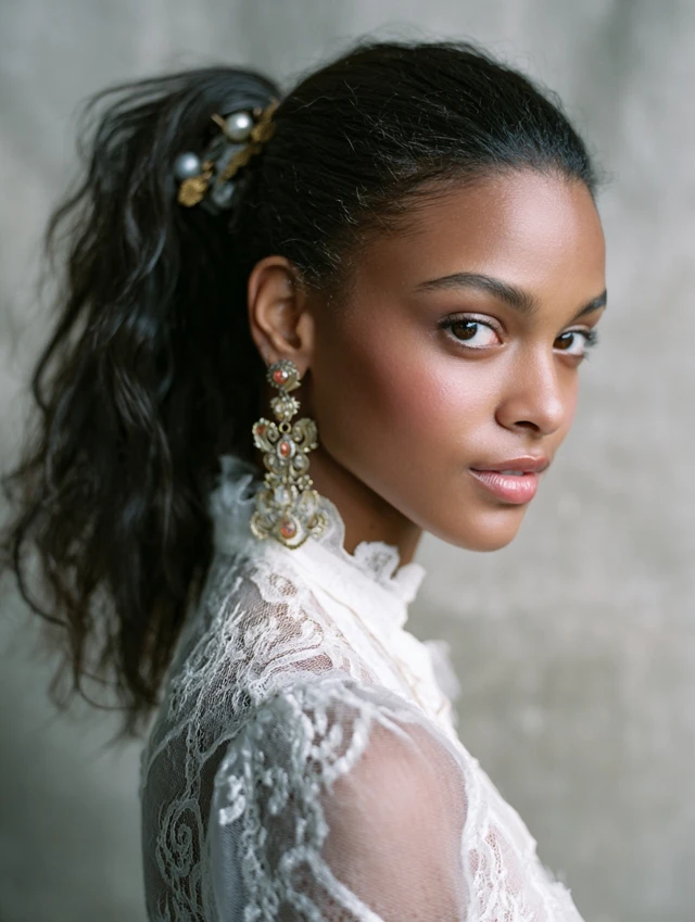 A side ponytail is playful, flattering, and works beautifully with decorative accessories.
