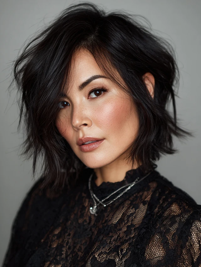 A flattering, chic, and age-appropriate style that makes the face appear slimmer and more defined.