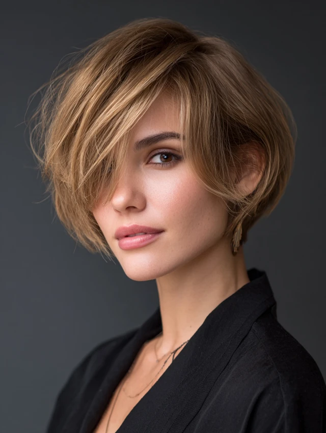 Side-swept bangs or layered front pieces highlight the eyes and cheekbones.